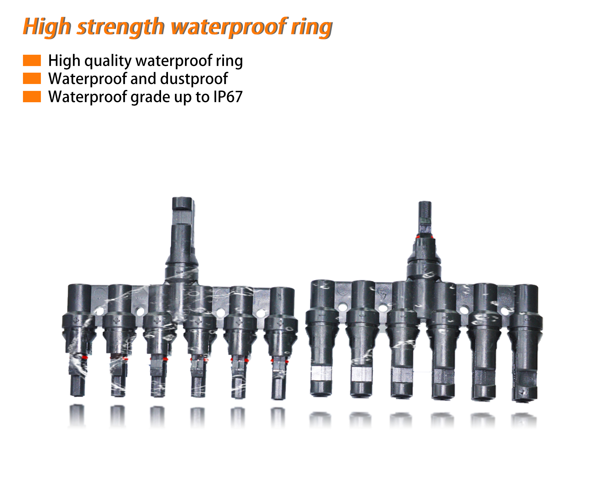 多输入一输出设计:T型6转1分支设计意味着该连接器可以接受来自6个不同光伏组件的输入,并将它们合并为一个输出,简化了布线和系统设计。